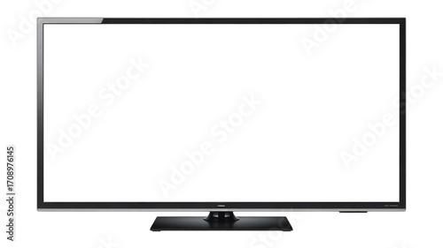 Naklejka premium Modern flat-screen television with blank white screen display monitor...