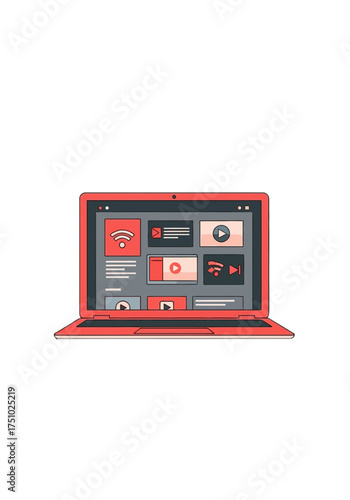 © ArtTuf, Obraz premium Modern Flat Vector Laptop Displaying Online Media Content