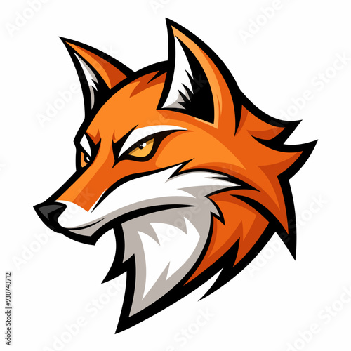 © design master, Obraz premium Modern Fox Head Logo Bold Black & White Silhouette with Orange Accents art vector illustration