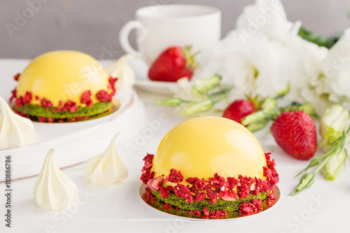 © torriphoto, Obraz premium Modern fruit mousse cakes