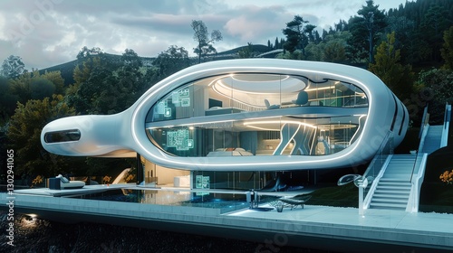 Obraz premium Modern Futuristic House in Serene Woodland Setting