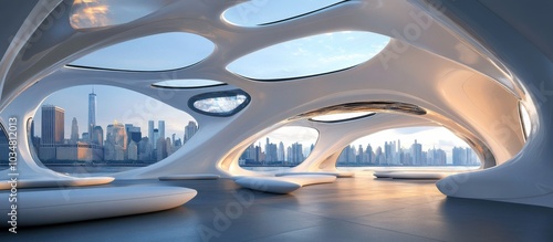 Fototapeta premium Modern futuristic interior building high ceiling is white