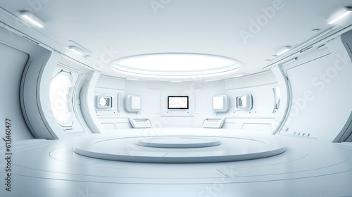 © Elaine, Obraz premium Modern futuristic Office Space. Created with Generative AI technology