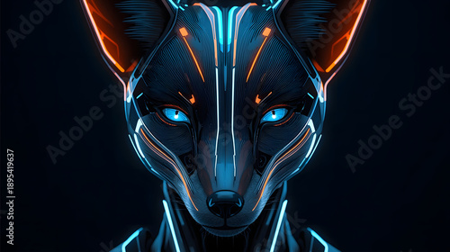 © recta, Naklejka premium modern futuristic portrait of a fox on black background