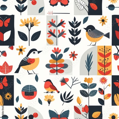 © Kristian, Fototapeta premium Modern Geometric Nature Icons Seamless Pattern