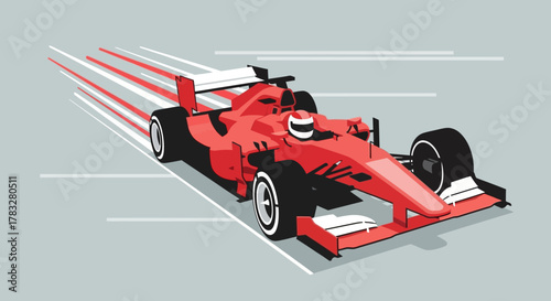 © Hadi, Obraz premium Modern Geometric Racing Car Illustration with Dynamic Speed Lines Design