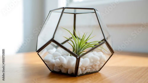 Fototapeta premium Modern Geometric Terrarium with Air Plant on Wood Table