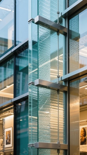 Fototapeta premium Modern glass and metal architectural detail of a building facade