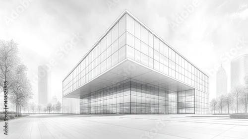 © Achmad, Fototapeta premium Modern Glass Building Architectural Design Sketch