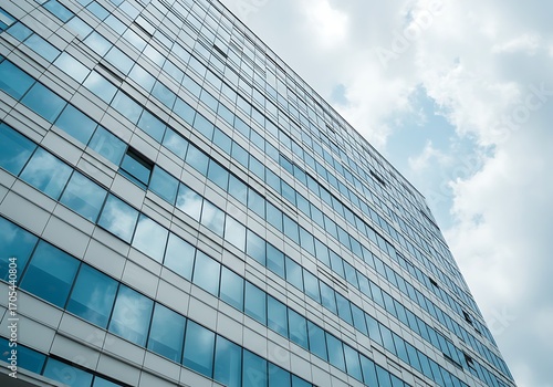 © GlambGarb, Fototapeta premium Modern glass building facade with geometric patterns and sky