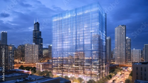Obraz premium Modern Glass Building in Urban Downtown Landscape