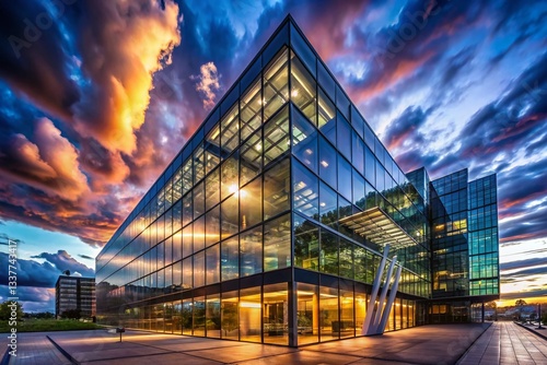 © Man888, Fototapeta premium Modern Glass Building Night Reflection Cloudscape Urban Architecture