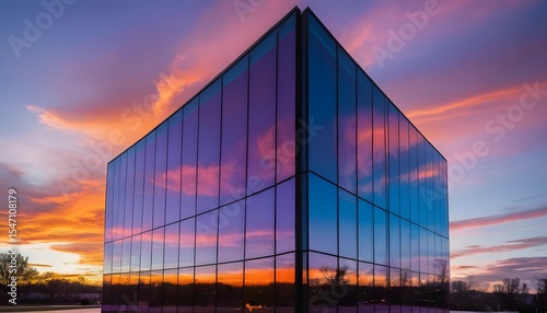 Obraz premium Modern Glass Building Reflecting Sunset. This stunning image of modern...