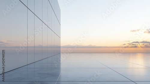 © STwul, Fototapeta premium Modern glass building sunset reflection urban cityscape