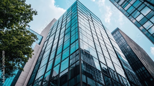 © AddStylerz, Fototapeta premium Modern Glass Buildings Against Blue Sky with Dramatic Cloud Patterns