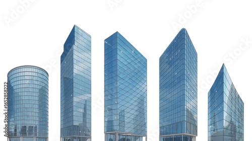 © ANISHA, Fototapeta premium Modern Glass Buildings on a Transparent Background
