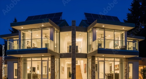 © Diki, Fototapeta premium Modern glass duplex with cantilevered sections