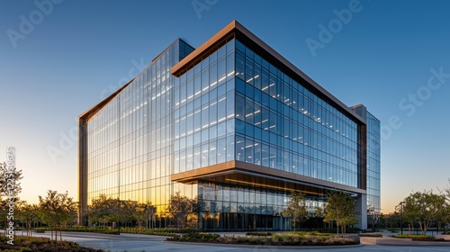© Zam, Fototapeta premium Modern glass office building at sunset. (3)