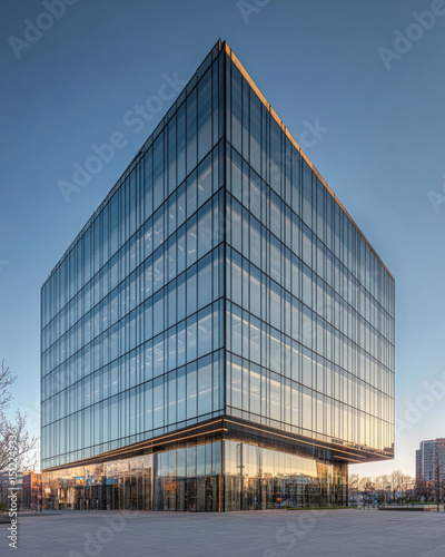 © Kudo Gadang, Fototapeta premium Modern Glass Office Building at Sunset