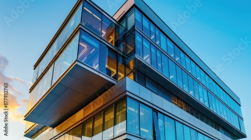 Fototapeta premium Modern Glass Office Building at Sunset