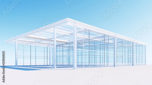 Fototapeta premium Modern glass pavilion, sunny day, empty interior, architectural rendering,...