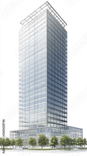 Obraz premium Modern glass skyscraper, city, urban, daytime, architectural rendering, real estate