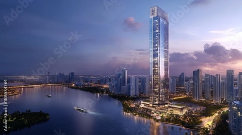 Obraz premium Modern, glass skyscraper dominates the cityscape, showcasing the...