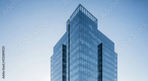 © Zhaorui, Fototapeta premium Modern glass skyscraper with clear blue sky background