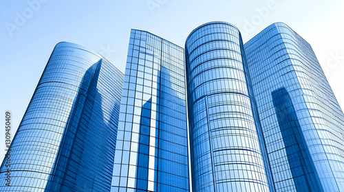 © Zamans, Obraz premium Modern Glass Skyscrapers Architectural Illustration