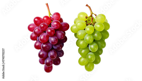 Fototapeta premium Modern grape bundle with whole and partially separated grapes, isolated on...