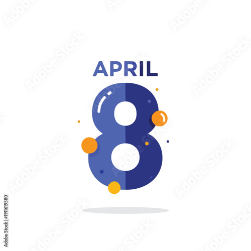 Fototapeta premium Modern graphic illustration of the date April 8, featuring bold typography...