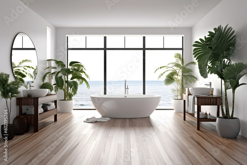 Fototapeta premium Modern gray bathroom with bathtub, 3d rendering