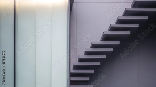 © Ana, Obraz premium Modern Gray Floating Staircase.