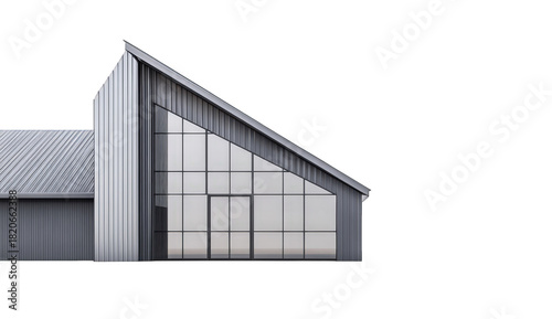 Fototapeta premium Modern gray house isolated on transparent background featuring a striking triangular window design and a sleek, minimalist aesthetic, showcasing contemporary architectural style