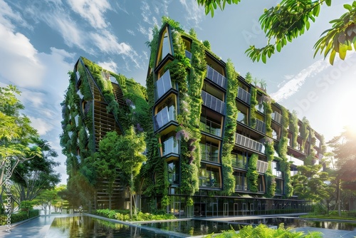 Fototapeta premium Modern Green Building With Reflecting Pool