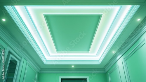 Obraz premium Modern Green Ceiling with LED Lights
