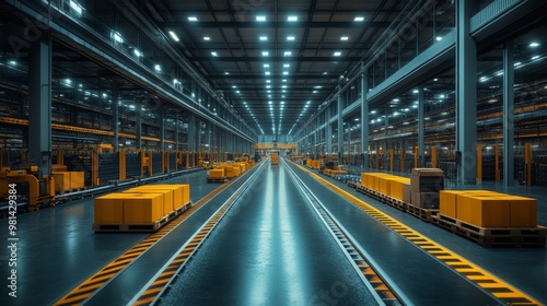 © Emiliia, Fototapeta premium Modern green logistics hub featuring advanced robotic systems in action