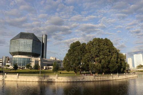 © Mikalai Drazdou, Fototapeta premium modern green park with amazing library view