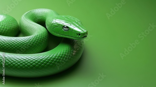 © Darcraft, Fototapeta premium Modern green snake sculpture with clean design, set against a monochrome green backdrop.