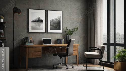 © Olha Vietrova, Fototapeta premium modern grey living room