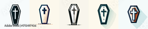 Obraz premium Modern Halloween Coffin Vector Set – Minimalist Cross Grave Icons with Shadows