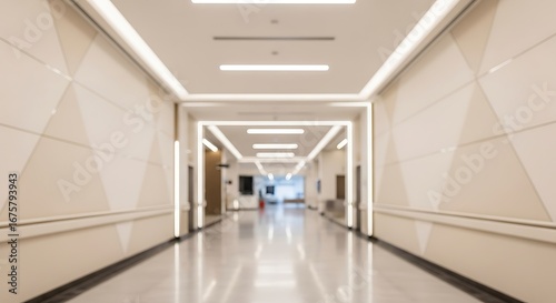 Obraz premium Modern Hallway with Escalators and Lighting.