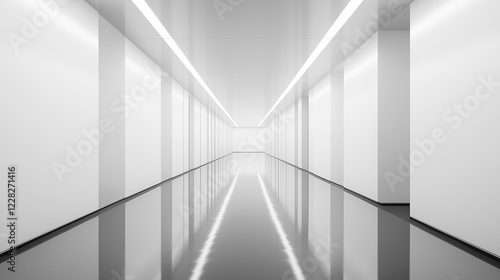 Fototapeta premium Modern hallway with reflective floors and bright lighting