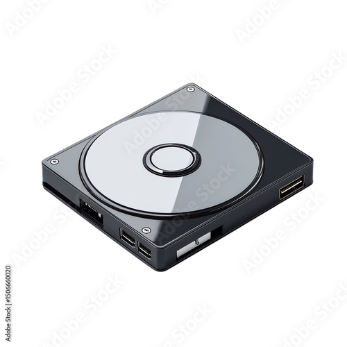 © Sabad, Fototapeta premium Modern hard drive tech data storage hub featuring USB ports showcasing on transparent background