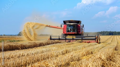 Obraz premium Modern Harvester in Action: High-Tech Agricultural Equipment for Efficient...