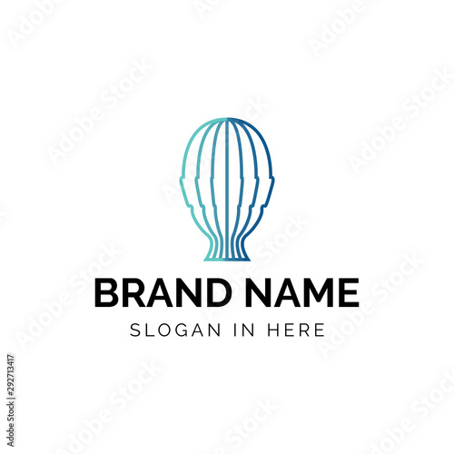 © oeisdesign, Naklejka premium Modern head with slide paper effect with line art style vector logo design