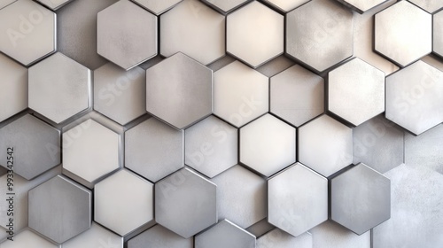 © Rizvan, Naklejka premium Modern hexagon tile mirror in gray and white featuring a textured background suitable for banners and panoramic views