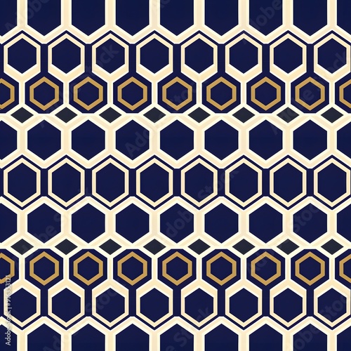 Fototapeta premium Modern hexagonal pattern in navy, gold, and white for contemporary design.