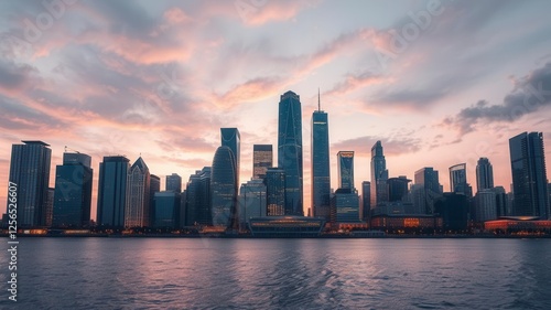 © Prayad, Obraz premium Modern high end architecture project evolution from concept to completion, skyline, engineering