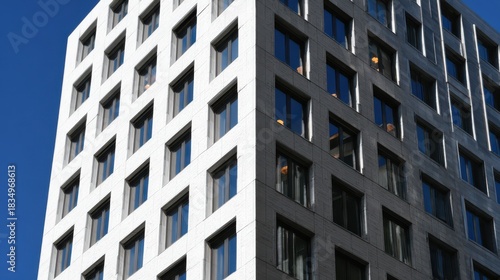© Al, Fototapeta premium Modern High-Rise Building Exterior Against Clear Blue Sky